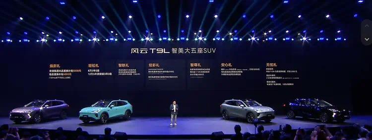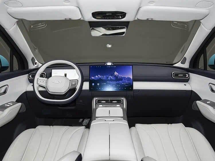 内饰使用了简约化的设计风格,配备了15.6英寸悬浮式中控屏幕,同时采用了两辐式方向盘、怀挡、双层中央通道等布局,迎合当下主流设计。而双拼的配色则增加了整体的内饰质感。对于风云T9L来说,它采用灵犀智能座舱,内置3nm芯片,中控屏采用风云UI 2.0,可支持灵犀智能体。前排配备双零重力座椅,主副驾16向电动调节,并带有通风加热按摩功能,同时还有记忆、腰托、腿托功能。后排二排座椅拥有35度电动调节角度,同样拥有通风和加热功能;另外还会提供23扬声器AI伯牙之音、17.3英寸二排吸顶屏等。
