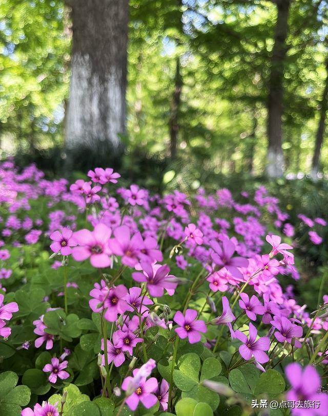 站在田垄间,风携着花香拂面,远处林影婆娑,近处花浪起伏,连呼吸都浸满了自然的清甜。酢浆草喜欢太阳,阳光越充足,花开得越艳丽。这种浪漫的紫色,身处密林,静谧、温柔,让人心醉。或许是少有人知道的缘由,这里几乎没有游人,我漫步于此,静静地享受这孤独的美,感觉特别享受。酢浆草,花期很短,近两天应该是今年最后的灿烂了。